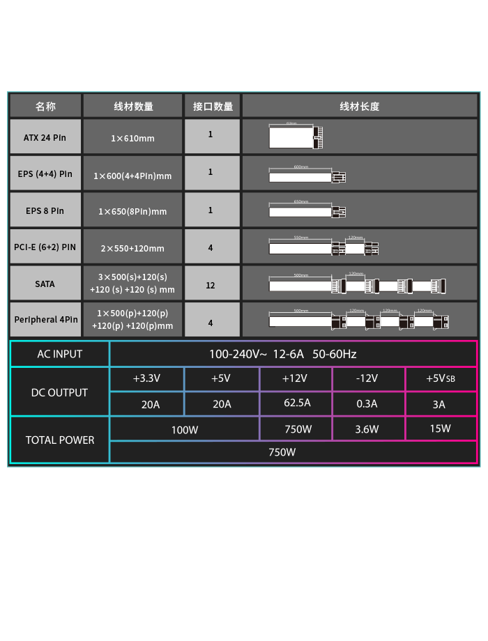 全模组电源,白色扁平线材